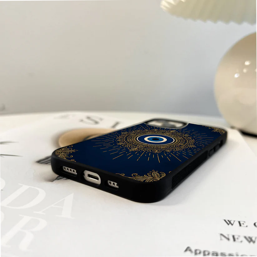 Golden Evil Eye Mandala Glass Case