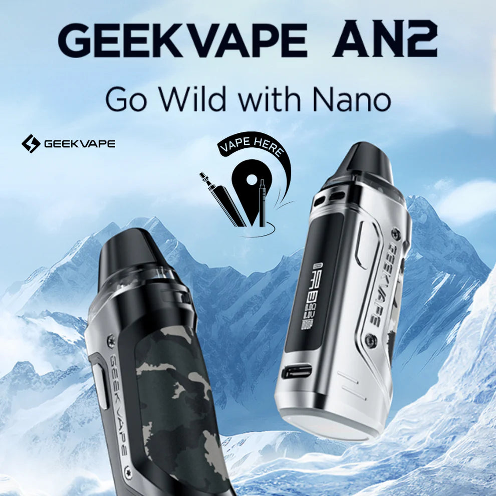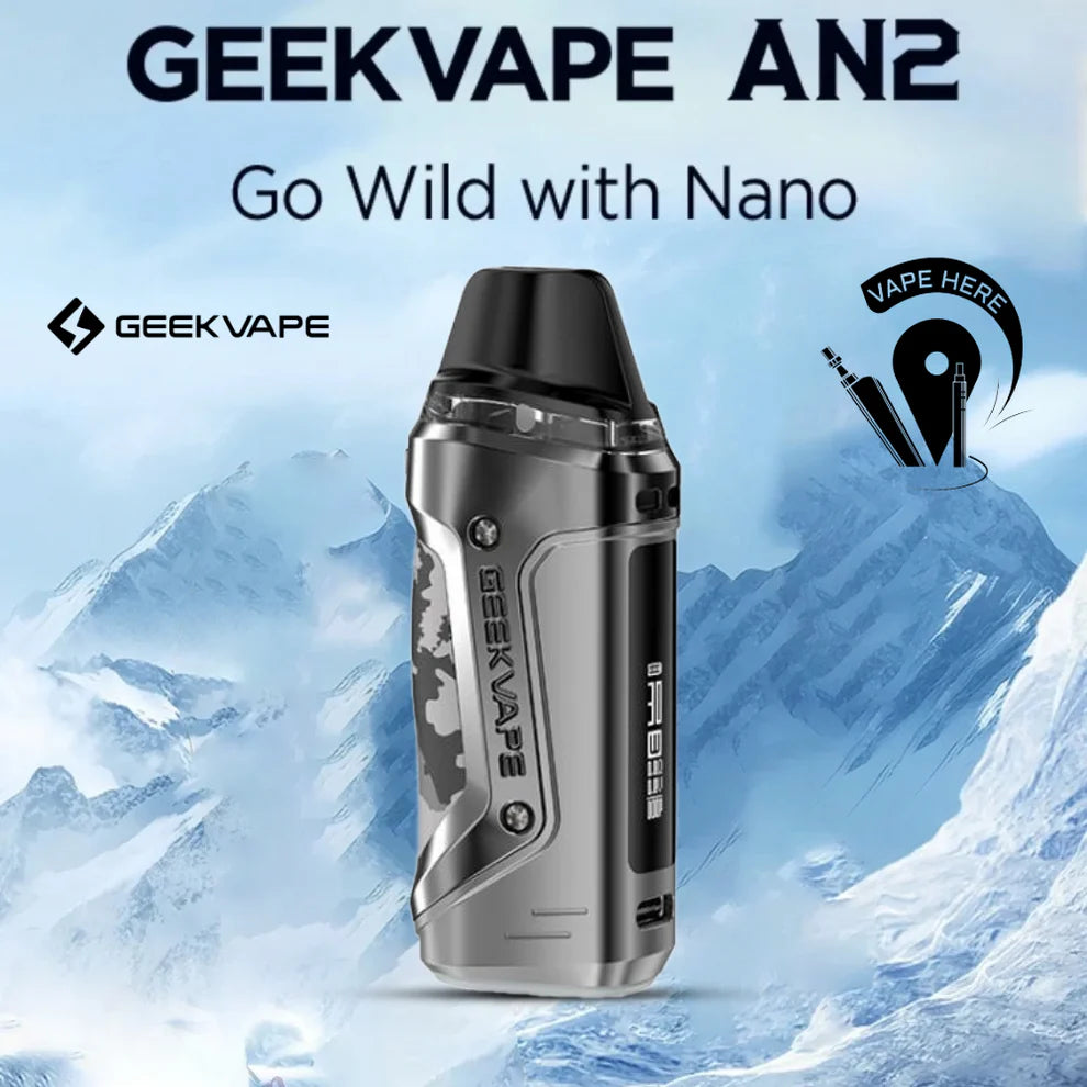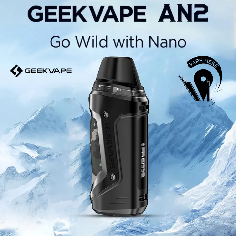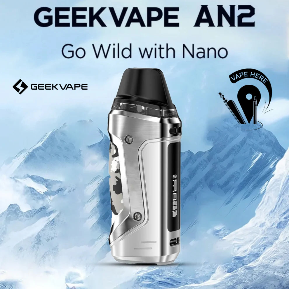Introducing the Geekvape AN 2 (Aegis Nano 2) Kit 1100mAh, a compact and powerful pod system for vapers who value durability, performance, and simplicity. This portable kit's tri-proof technology is designed to resist even the harshest environments, guaranteeing that you may vape without anxiety no matter where you are. The 1100mAh internal battery and 30W maximum output provide steady power and performance, while the leakproof construction keeps your sessions mess-free.